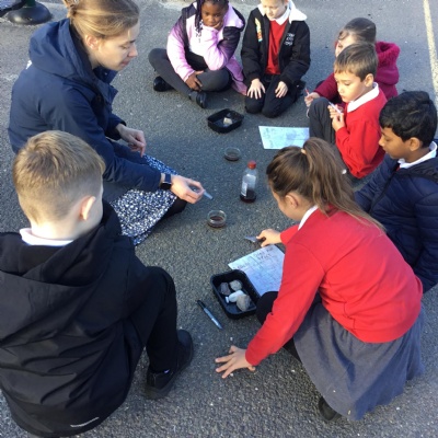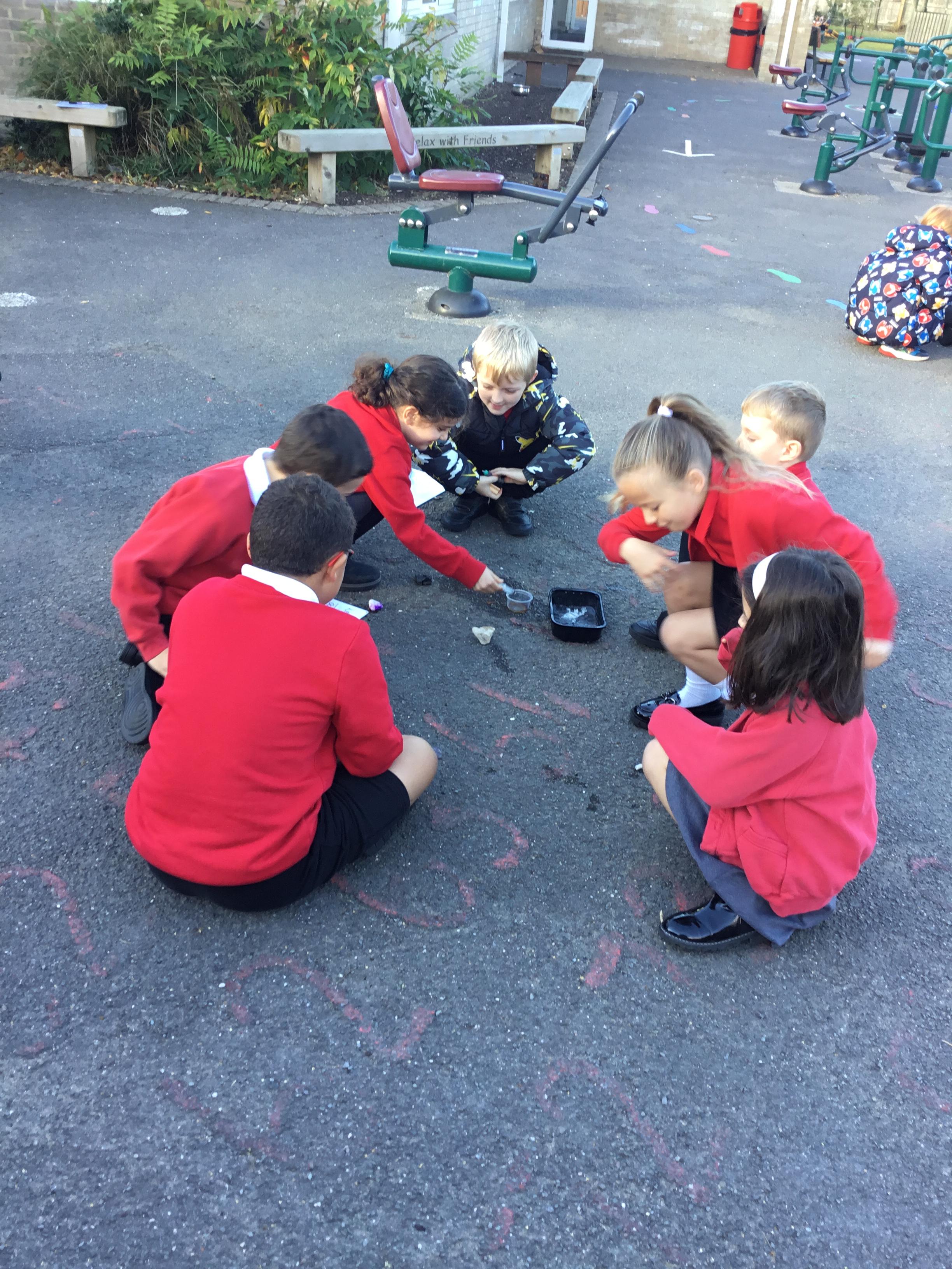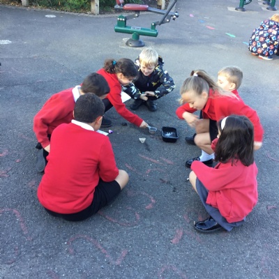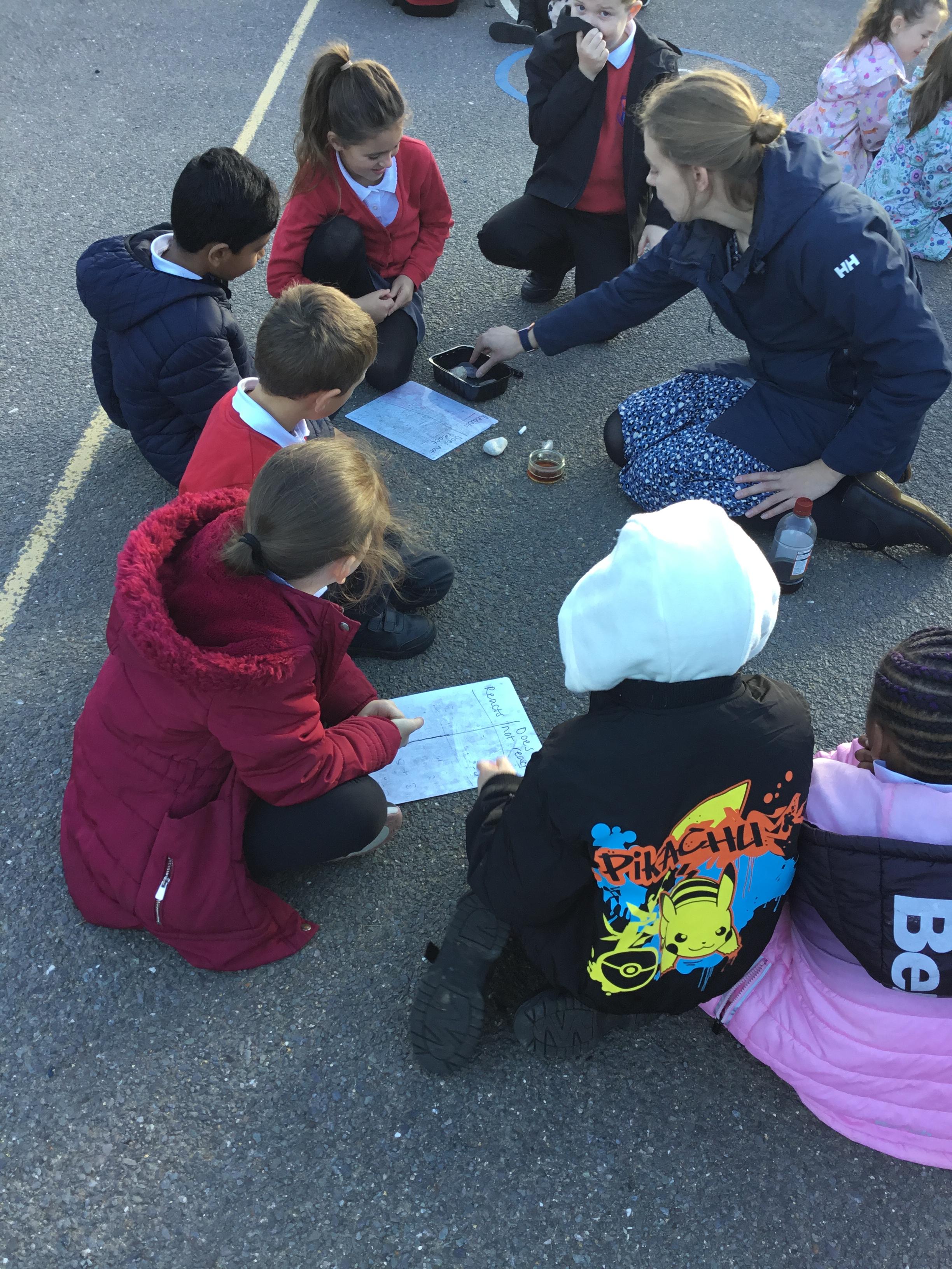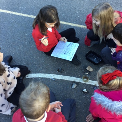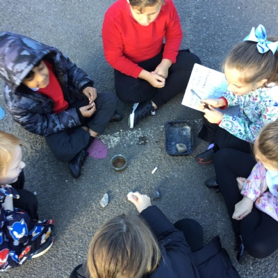 Year 3 have been learning about rocks. They tested whether they could identify a rock as limestone or chalk. Working together in small groups, they dropped vinegar onto different rocks and observed the reaction.
