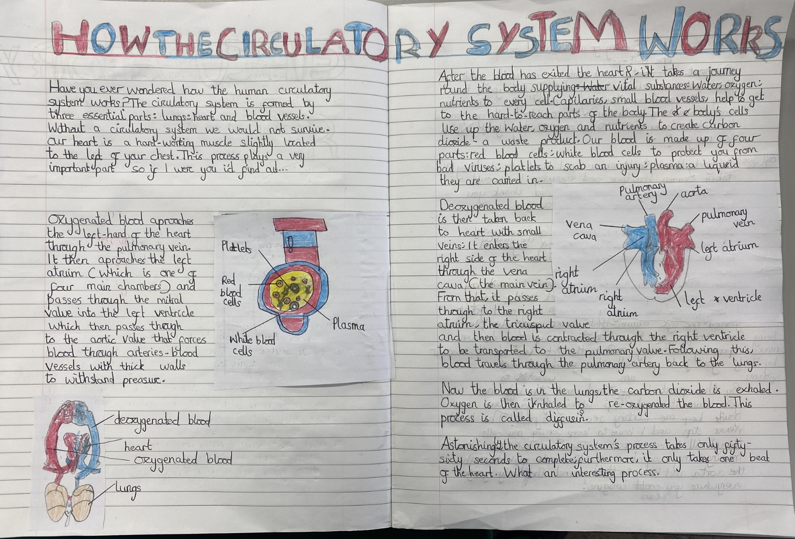 We completed our writing unit on the human circulatory system.  Throughout the unit, the children developed their use of formal language by exploring how using different words made their ideas more formal and by using grammatical structures such as passive voice and subjunctive mood.  Their final pieces look fantastic!